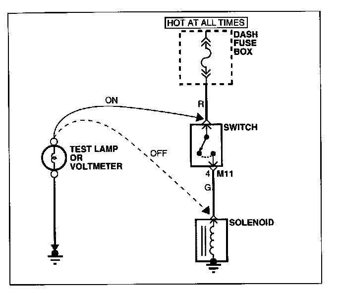 a. Connect one lead of a test lamp or voltmeter to a ground. If you are using a voltmeter, be sure it is the voltmeter's negative test lead you have connected to ground.