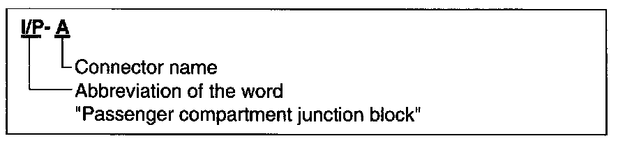 A junction block identification symbol consists of a wiring harness location classification symbol corresponding to a wiring harness location and number corresponding to the connector in the junction block.