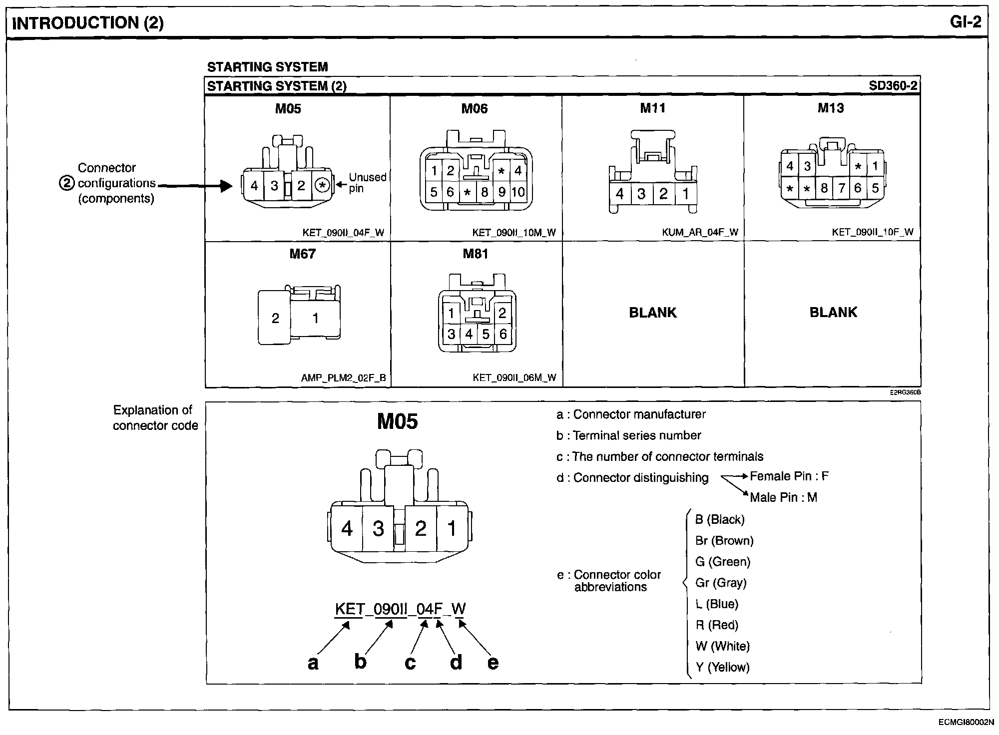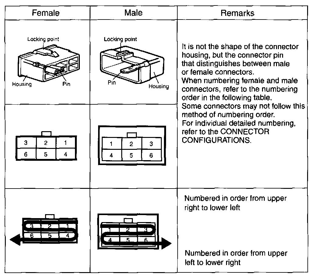 - It shows the front of the connector on the harness side when not to the harness connector. The terminal number on each connector can be obtained by following the pattern used in (5) connector view and numbering order. Unused terminals are marked with an asterisk (*).