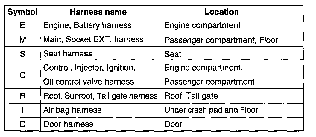 * It depends on vehicles, it is necessary to check the harness name symbol on the harness layouts for detailed symbol.