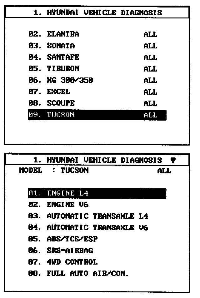 1. Select "Vehicle" and "Engine" (For example, TUCSON 2.0L L4).