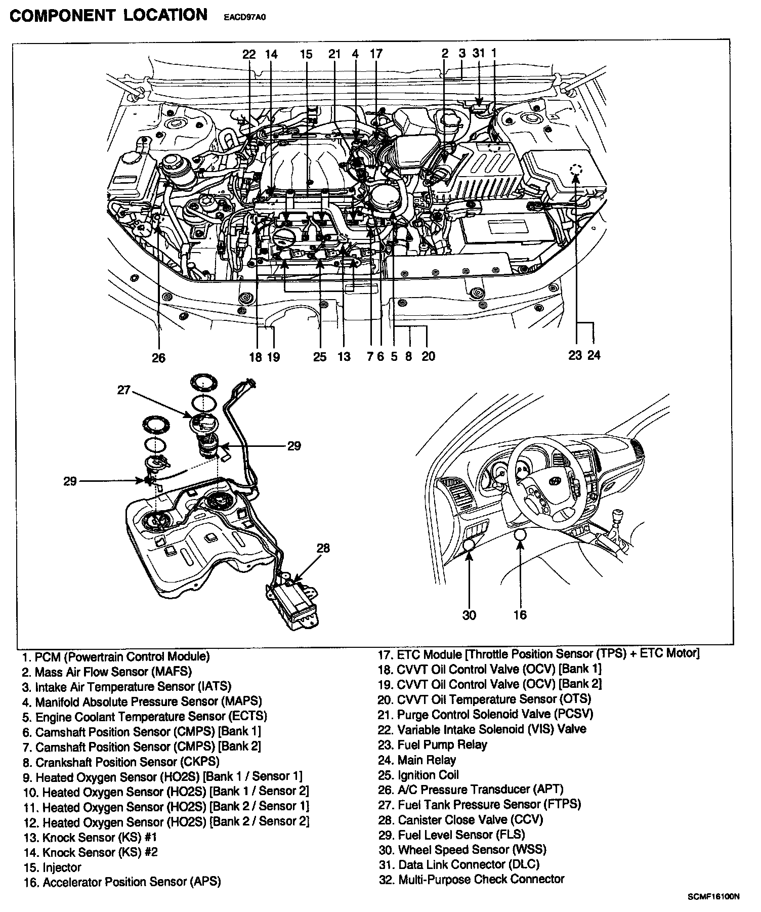 Gasoline Engine Control System - Component Location: