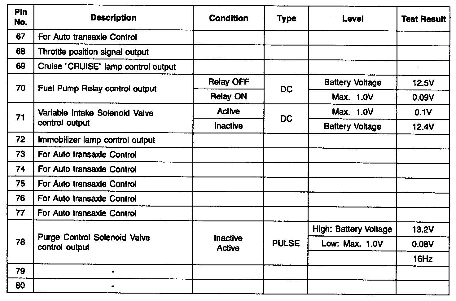 PCM Terminal Input/Output Signal - (C130-B) Part 2: