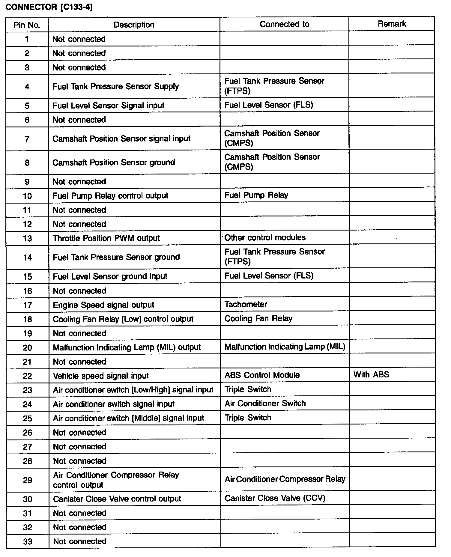 ECM Terminal Function - Connector [C133-4] (Part 1):