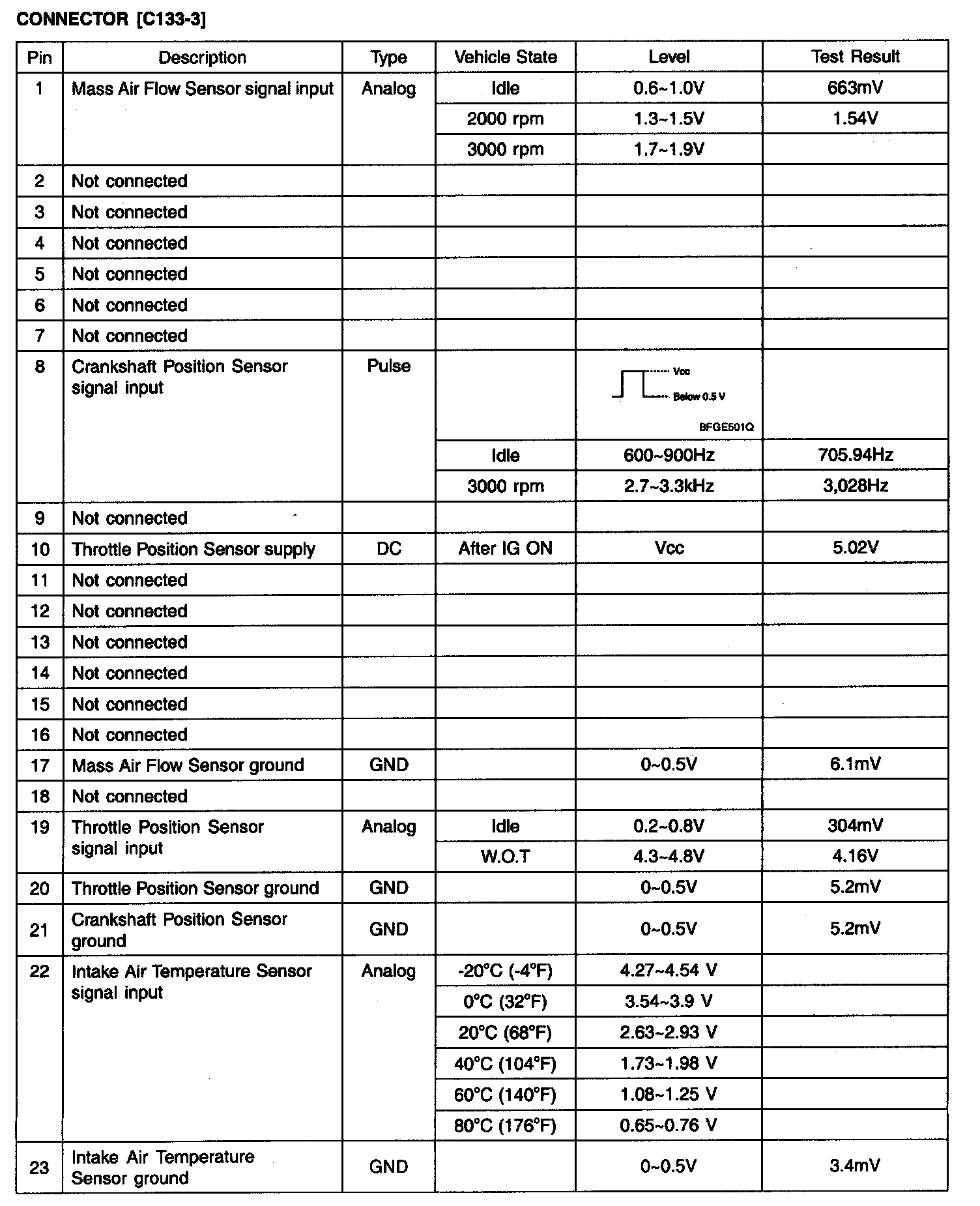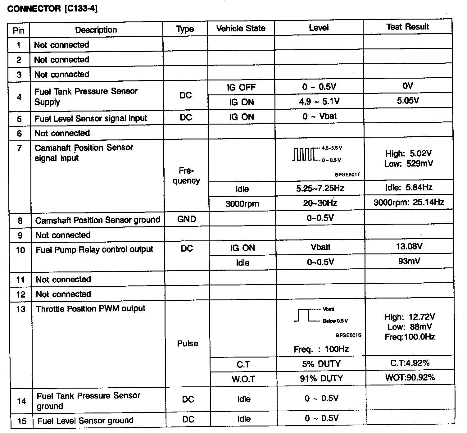 ECM Terminal Input/Output Signal - Connector [C133-4] (Part 1):