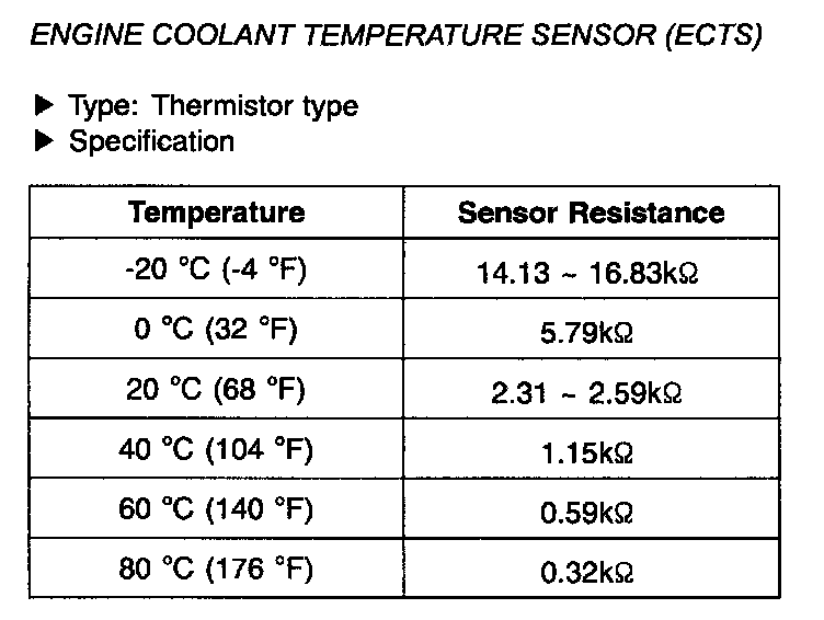 Engine Coolent Temperature Sensor (ECTS) - Specifications: