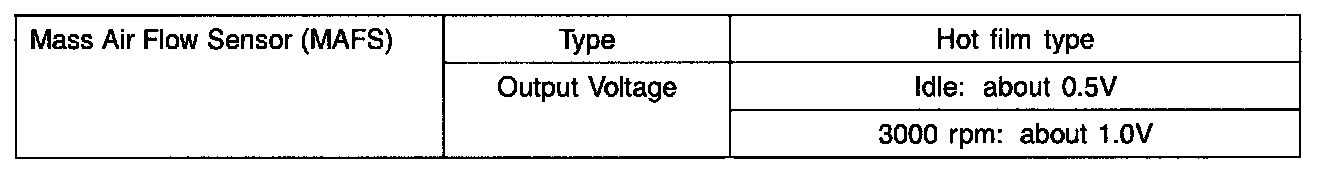 Mass Air Flow Sensor (MAFS) - Specifications: