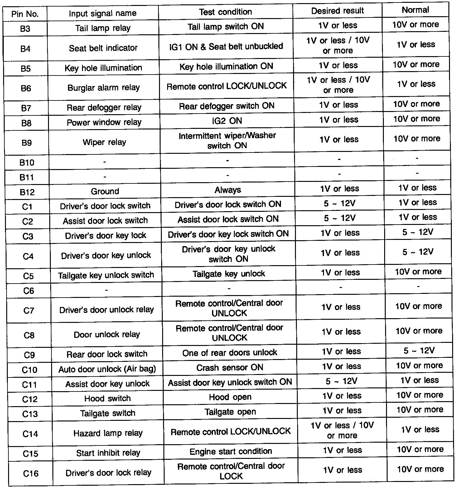 ETACS MODULE INPUT SIGNAL TEST
