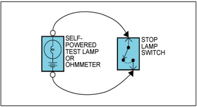 Use a self-powered test lamp or an ohmmeter to check for continuity.