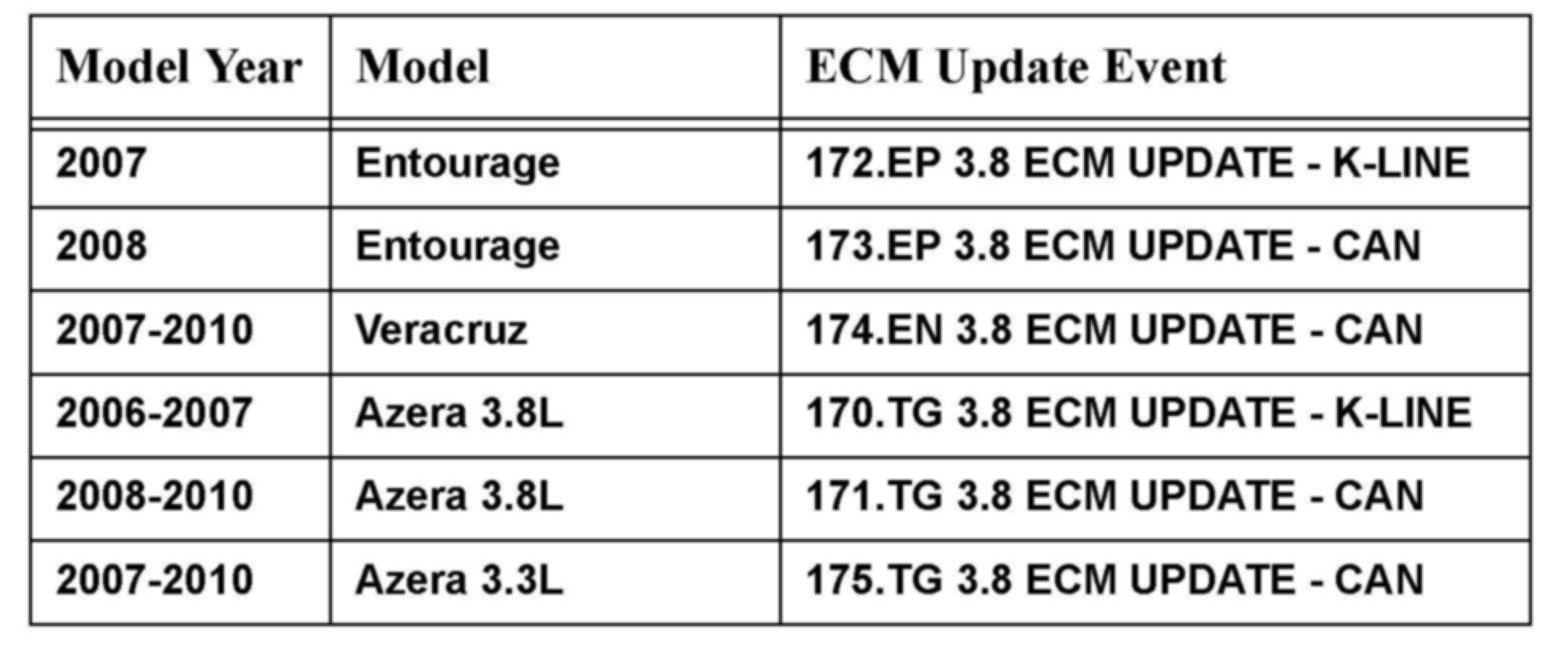Home >> Hyundai >> 2009 >> Azera V6-3.3L >> Repair and Diagnosis >> Powertrain Management >> Computers and Control Systems >> Engine Control Module >> Technical Service Bulletins >> Customer Interest >> Engine Controls - MIL ON/Multiple DTCs/Rough Idle >> Service Procedure