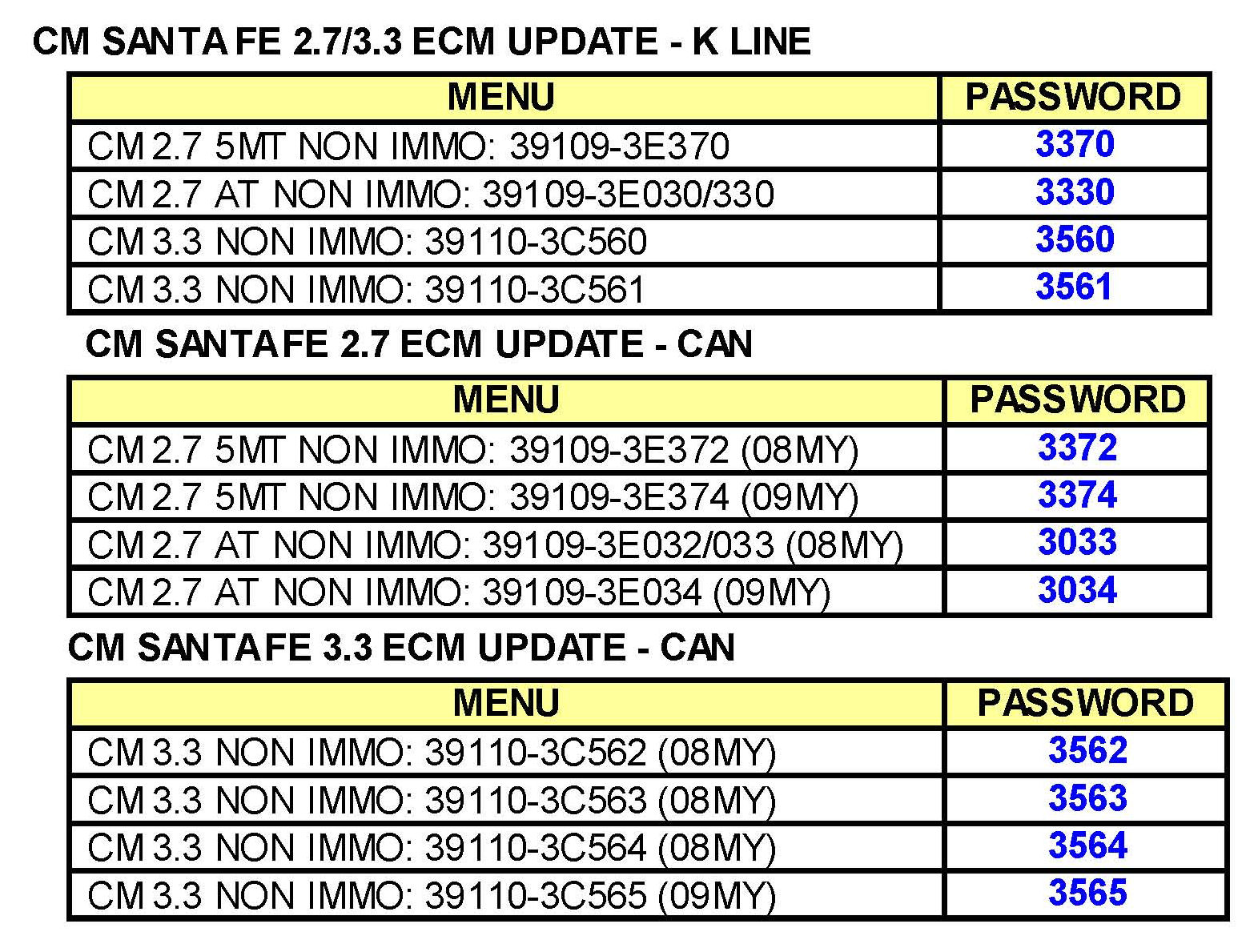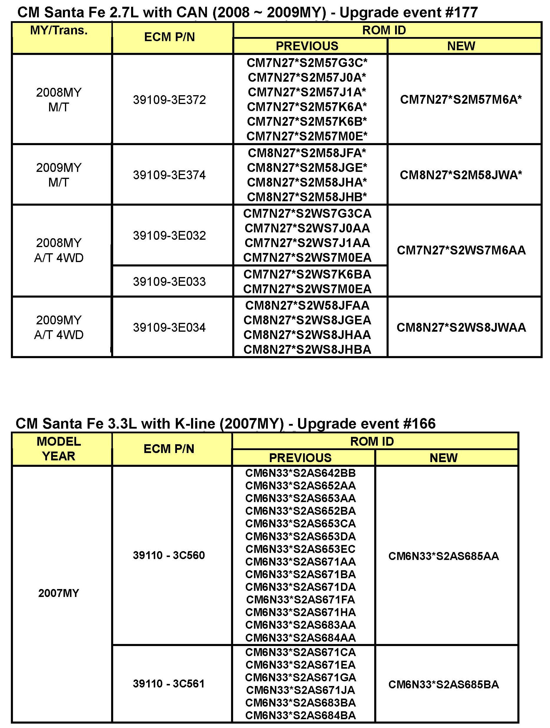 10. For EN Veracruz after update is completed, perform the VIN writing procedure or immobilizer key teaching procedure on the affected vehicles where it is referenced in the "ECM ROM ID INFORMATION "table earlier in this TSB.