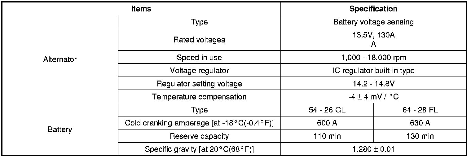 Home >> Hyundai >> 2009 >> Azera V6-3.8L >> Repair and Diagnosis >> Specifications >> Electrical Specifications >> Charging System >> System Specifications