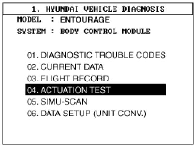 2. To diagnose the BCM function, select the menu of model and body control module.