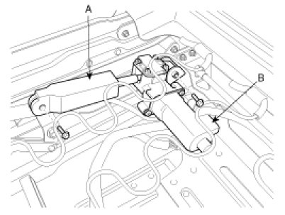 3. Remove the seat heater module (B) after removing seat heater module mounting screw (2EA) and connector from rear height motor (A).