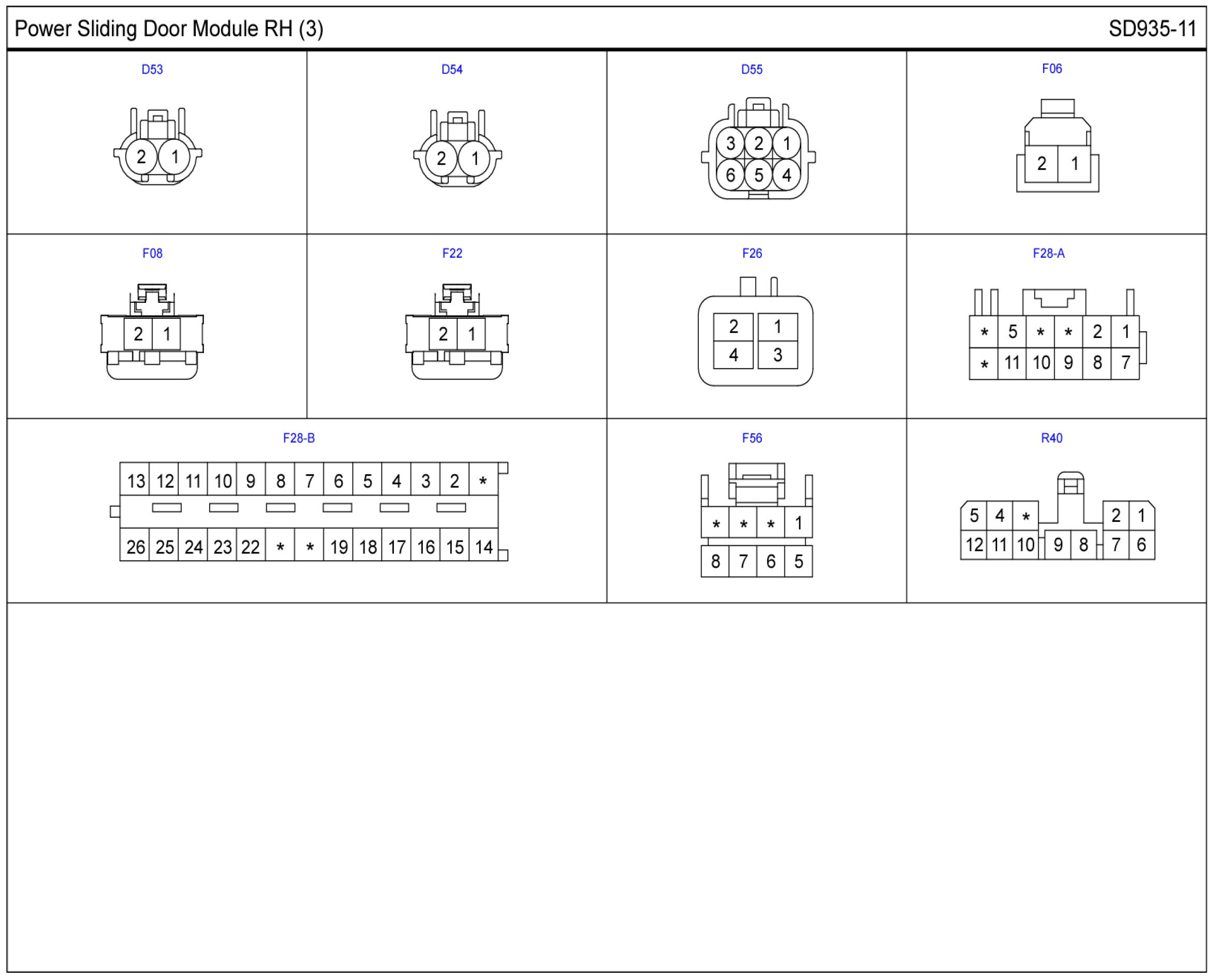 Power Sliding Door Module RH Connector Pin Outs: