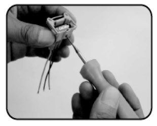 3. Put the end of each cut off wire in the middle of the splice joint terminal and compress using wire stripper.