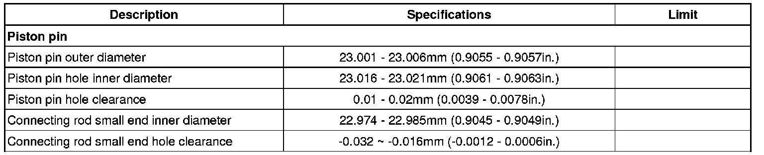 Oil ring 0.06 - 0.15 mm (0.0024 - 0.0059 in.)