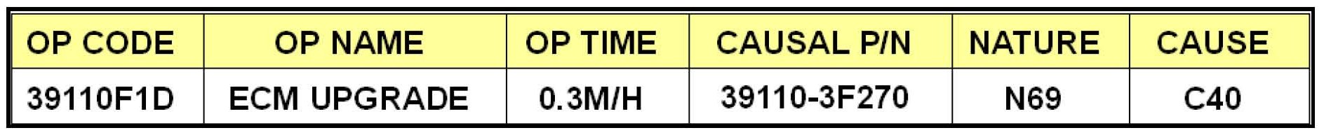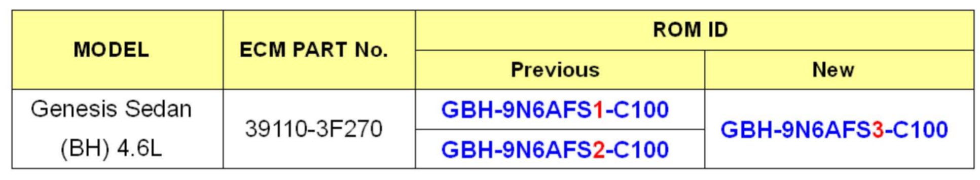 To verify the vehicle is affected, be sure to check the version of the vehicle's engine control unit ROM ID with reference to the ROM ID Information Table mentioned below before attempting to update the control unit software.