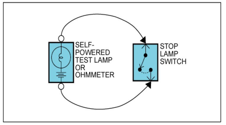 B. Connect one lead of a self-powered test lamp or ohmmeter to one end of the part of the circuit you wish to lest. If you are using an ohmmeter, hold the leads together and adjust the ohmmeter to read zero ohms.