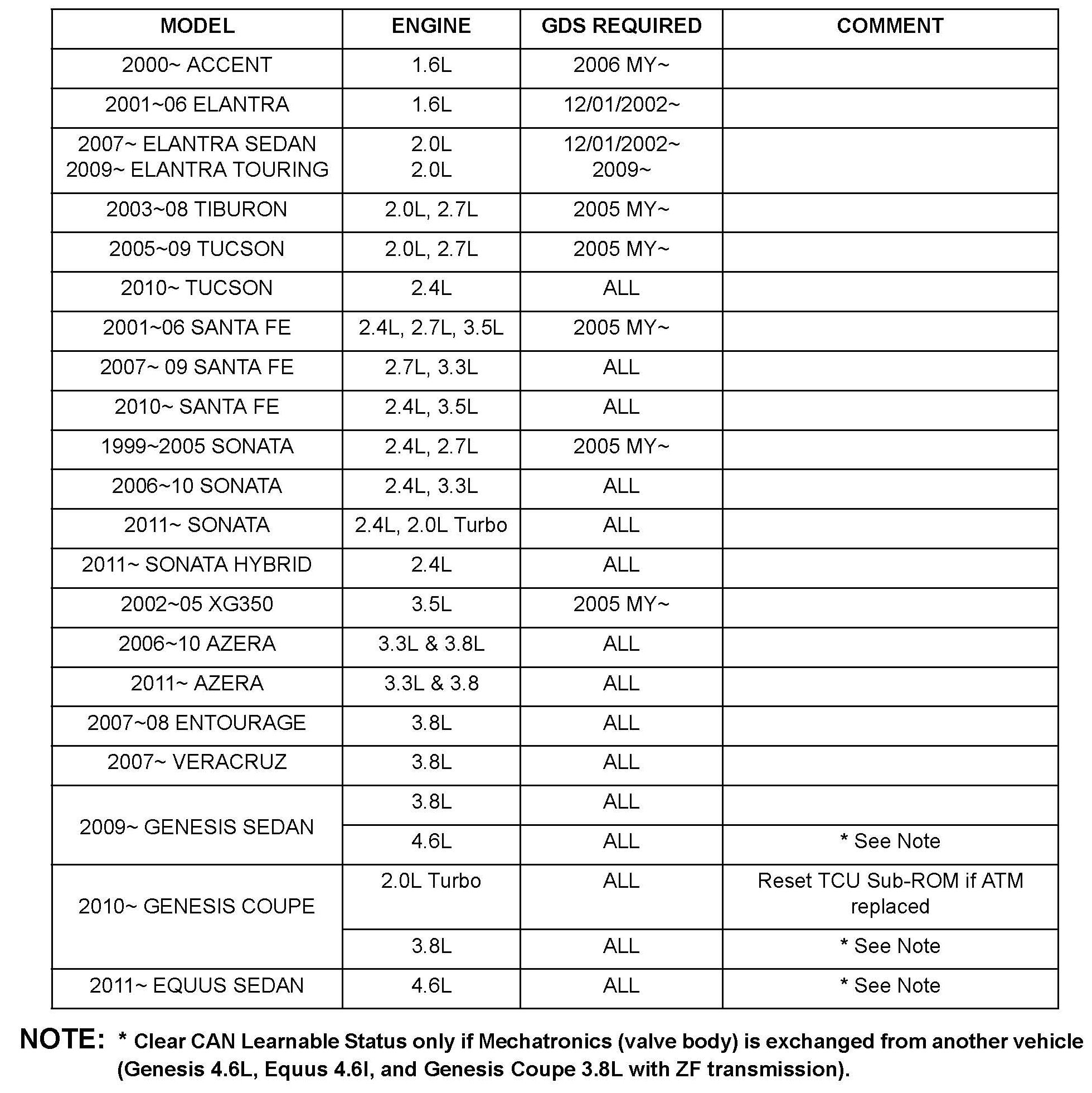 Home >> Hyundai >> 2009 >> Sonata L4-2.4L >> Repair and Diagnosis >> Powertrain Management >> Computers and Control Systems >> Relays and Modules - Computers and Control Systems >> Engine Control Module >> Technical Service Bulletins >> All Technical Service Bulletins >> A/T Controls - Resetting PCM/TCM Adaptive Values