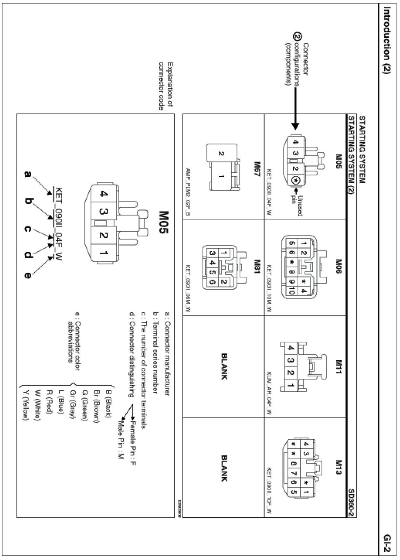 - It shows the front of the connector on the harness side when not to the harness connector. The terminal number on each connector can be obtained by following the pattern used in (5) connector view and numbering order. Unused terminals are marked with an asterisk (*).