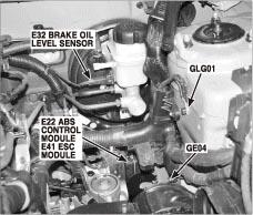 | ESC Control Module | Left rear of engine compartment. See Figure. |