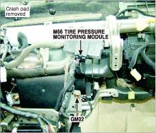 | Tire Pressure Monitoring Module | Under front of center console. See Figure. |