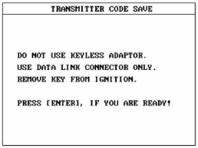 4. After removing the ignition key from key cylinder, push "ENTER" key to proceed to the next mode for code saving. Follow steps 1 to 4 and then code saving is completed.