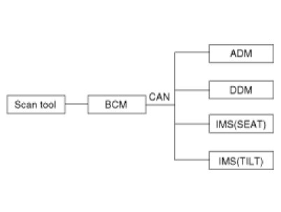 2. BCM receives the commands from scan tool and remits to DDM, ADM and IMS units with CAN. BCM receives the response from the units with CAN inversely, and feedback to scan tool with CAN.