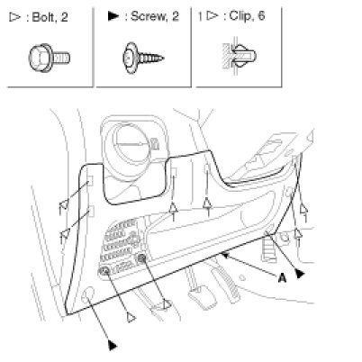 2. Remove the crash pad lower panel (A).