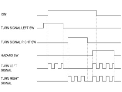 While IGN2 is ON if turn signal left switch or turn signal right switch or hazard switch input is detected, then turn signal outputs are turned ON following the switch input (left, right or hazard).