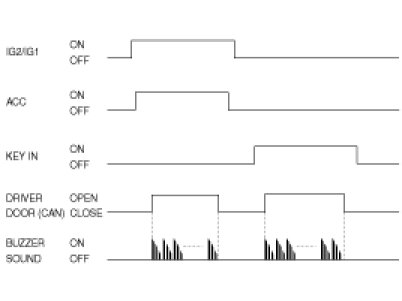 (2) If the key is pulled out from key cylinder and ACC = IGN2 = IGN1 = OFF, or if driver side door is closed, then the key operated warning stops immediately.