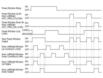 Power window relay OFF or Power window LOCK CAN signal LOCK and rear power window UP/DOWN CAN signal OFF.