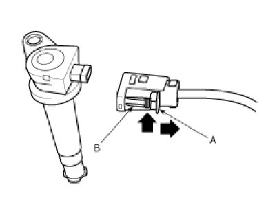 When removing the ignition coil connector, pull the lock pin(A) and push the clip(B).