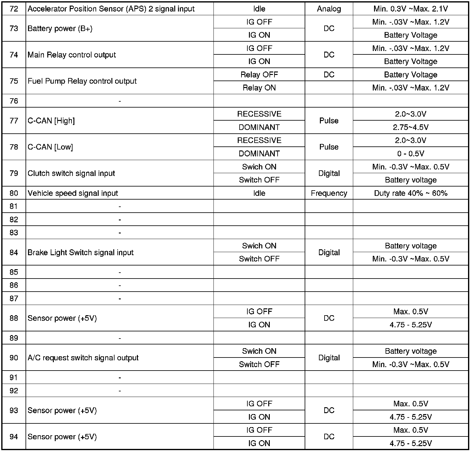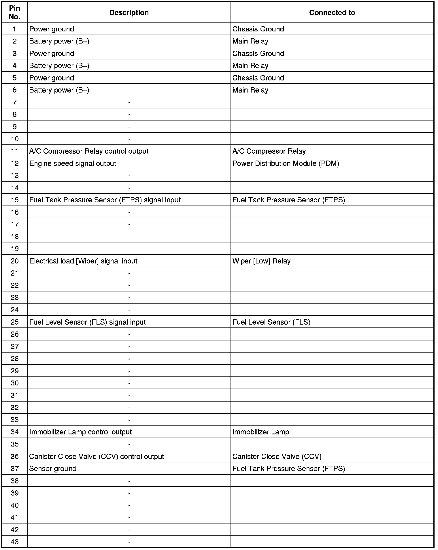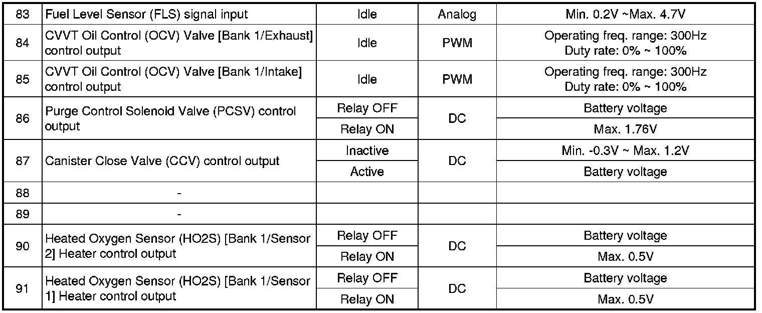 ECM Terminal And Input/Output signal (M/T)