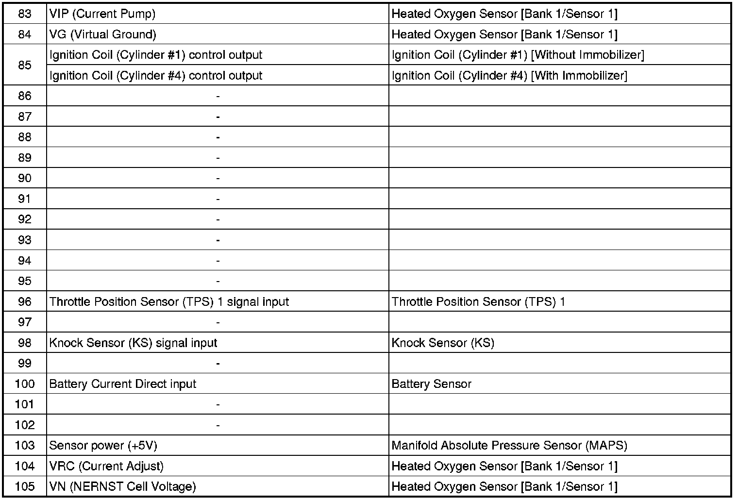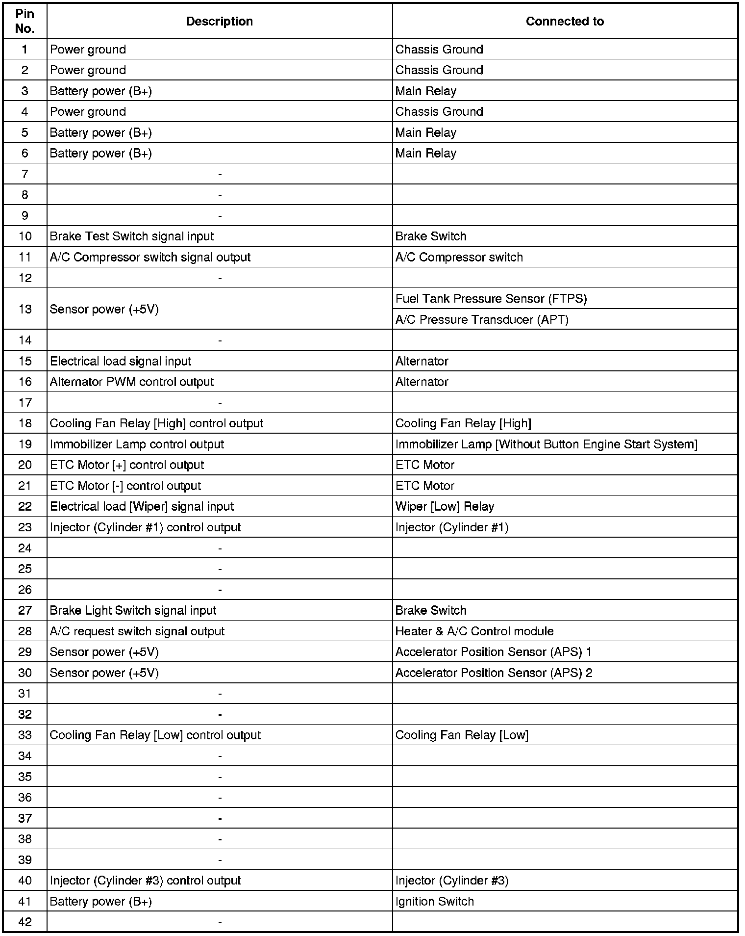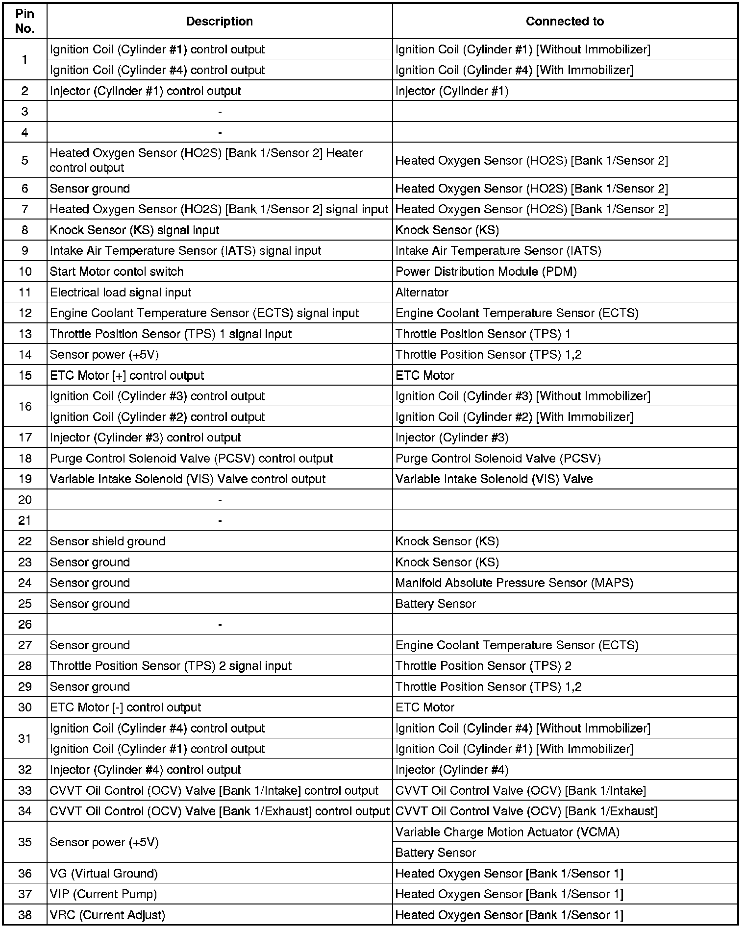 ECM Terminal And Input/Output signal (M/T)
