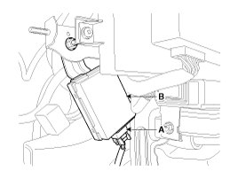 8. After loosening the mounting nuts and connector (A), then remove the RF receiver (B).