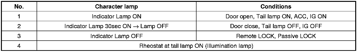 Indicator ON/OFF Condition According To Ignition Key's Position