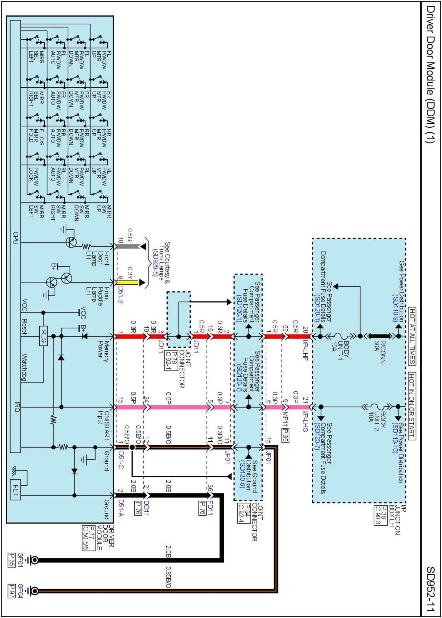 Home >> Hyundai >> 2011 >> Equus V8-4.6L >> Repair and Diagnosis >> Powertrain Management >> Computers and Control Systems >> Body Control Module >> Diagrams >> Electrical Diagrams >> Driver Door Module (DDM)