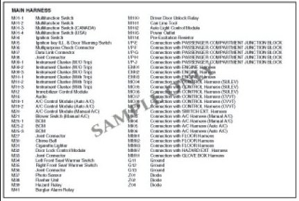 Electrical wiring connectors are classified according to the wiring parts in the Harness Layouts.