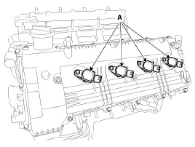1. Disconnect the ignition coil connectors (A).