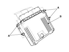 5. After removing the installation bolts (A), remove the ECM (B) from the bracket.
