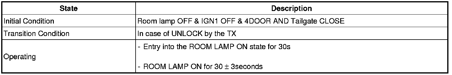 (2) In the (1) state, if the driver's door (or assist's door) is closed, then the IGN Key Hole Illumination shall be OFF after it is in the ON state for 30 seconds.