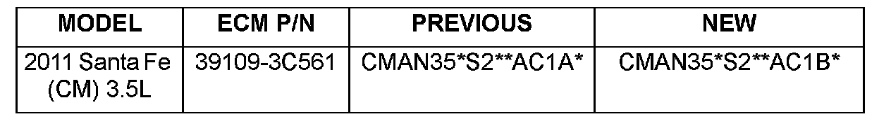 Home >> Hyundai >> 2011 >> Santa Fe FWD V6-3.5L >> Repair and Diagnosis >> Powertrain Management >> Computers and Control Systems >> Relays and Modules - Computers and Control Systems >> Engine Control Module >> Technical Service Bulletins >> All Technical Service Bulletins >> Campaign TE2 - ECM Update For Shift Quality
