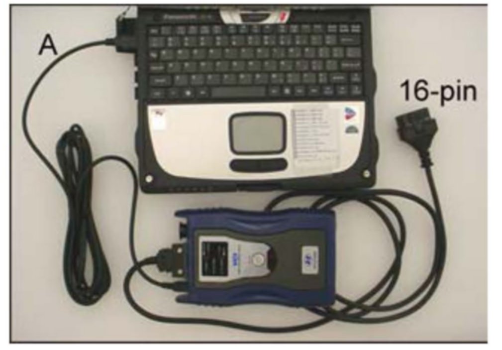 ^ Connect the USB cable (A) between the GDS and the VCI.