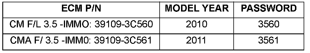 Verify the ECM ROM ID before attempting to update the vehicles software. Refer to the ROM ID Information Table below: