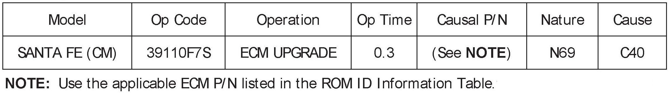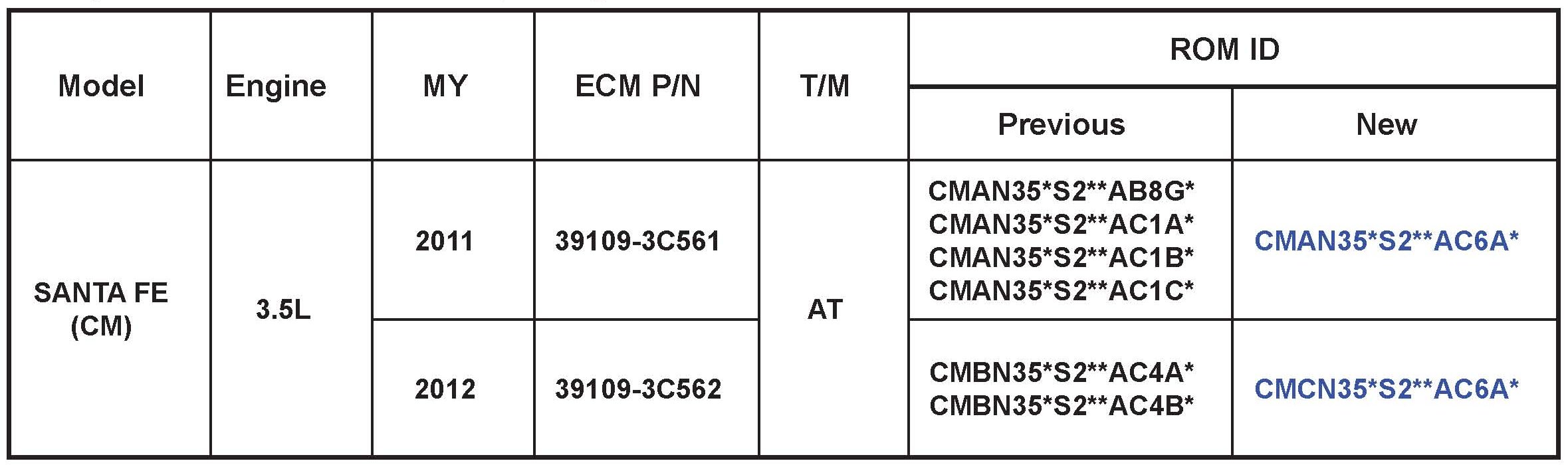Verify the ECM ROM ID before updating the vehicles software. Refer to the table.
