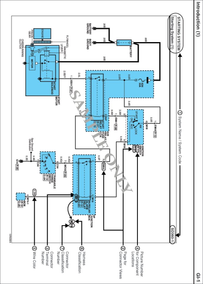 - Each Page is consisted of circuits by system. This schematic diagram includes the path of electricity flow, connection condition for each switch, and the function of other relevant circuits at once. It is applicable to real service work.