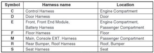 * It depends on vehicles, it is necessary to check the harness name symbol on the harness layouts for detailed symbol.