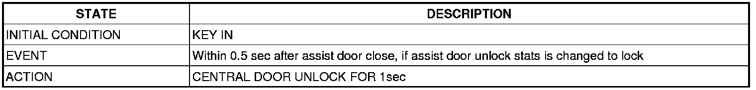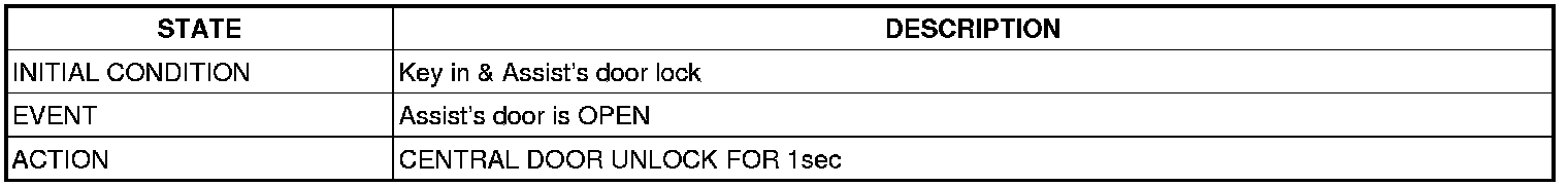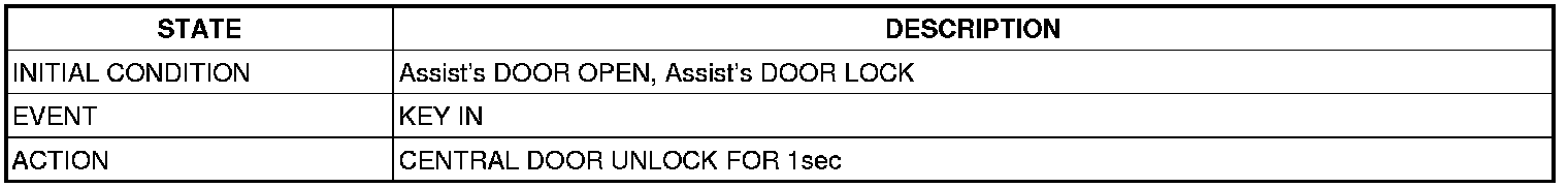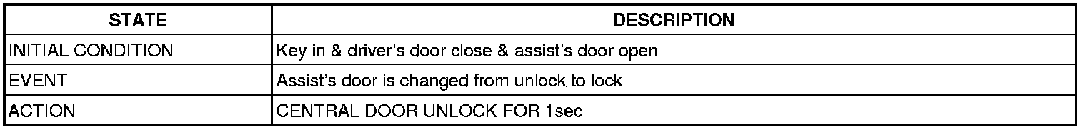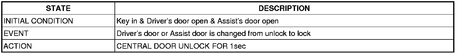 (1) It output UNLOCK in case of driver's DOOR UNLOCK KNOB change to UNLOCK from LOCK in all DOOR CLOSE states(0.5 ±0.1sec). AUTO DOOR UNLOCK(connecting to driver's seat) input condition at AUTO DOOR UNLOCK (CONNECTING TO A SPEED LEVER) output is ignored.